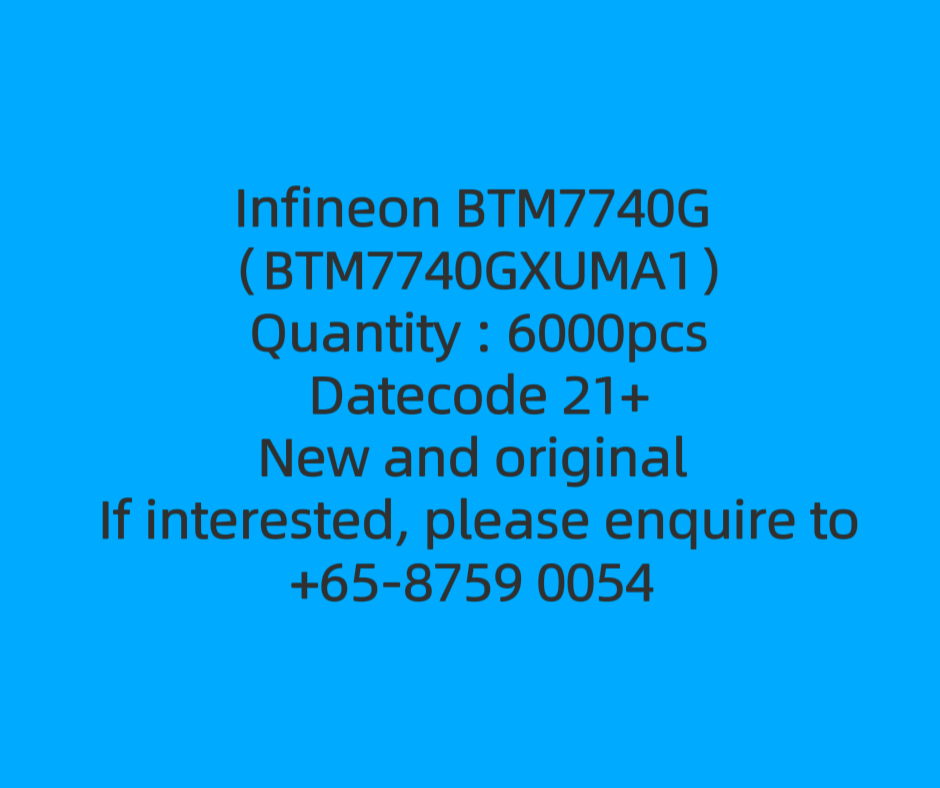 Infineon BTM7740G (BTM7740GXUMA1) Posted on April 17, 2023 by KCD Technology Pte Ltd in Uncategorized Share this: Click to share on WhatsApp (Opens in new window) WhatsApp Click to email a link to a friend (Opens in new window) Email Like Loading... Published by KCD Technology Pte Ltd We are independent distributor for Apple and Samsung accessories Audio and Speakers like JBL, Harman Kardon, Sony, Bose etc... Components like NXP, Infineon , STM etc .... View all posts by KCD Technology Pte Ltd